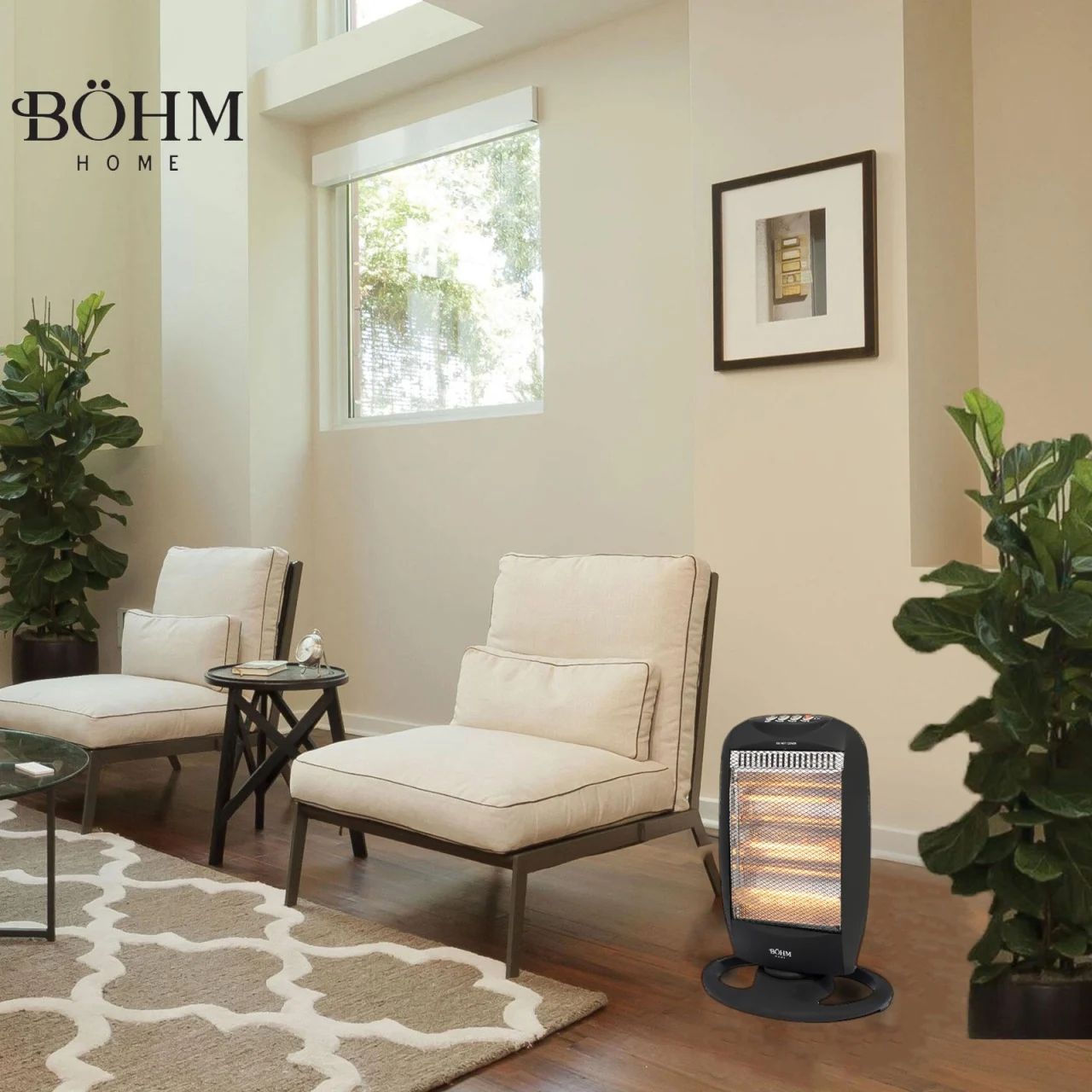 Incalzitorul electric cu halogen BOHM BHH05, cu putere maxima de 1200 W, este o solutie moderna si eficienta pentru incalzirea rapida a spatiilor de dimensiuni medii, precum camere de zi, dormitoare sau birouri. Tehnologia de incalzire cu quartz-halogen genereaza caldura instant, directionata si economica, contribuind la un consum redus de energie.