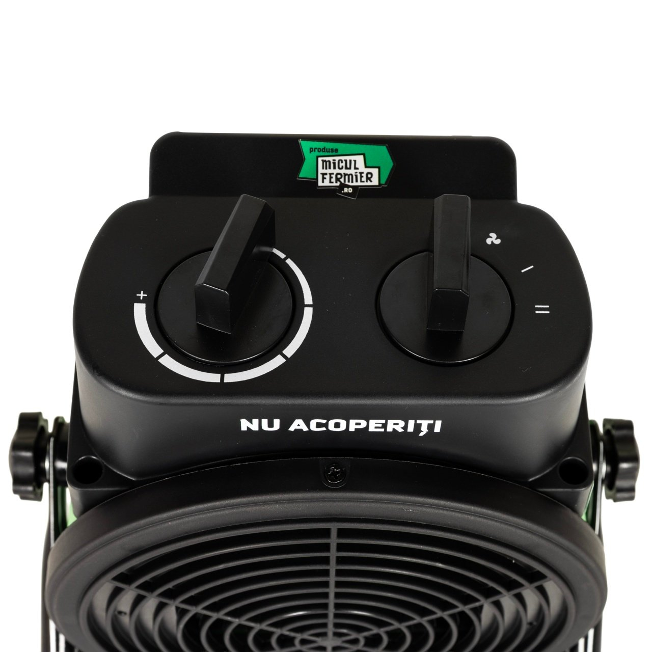 Aeroterma electrica Micul Fermier 1000/2000W este un aparat practic si eficient, proiectat pentru incalzirea rapida a spatiilor mici si medii. Carcasa rezistenta din plastic si protectia electrica Clasa II garanteaza siguranta si durabilitate in utilizare, chiar si in functionare prelungita.