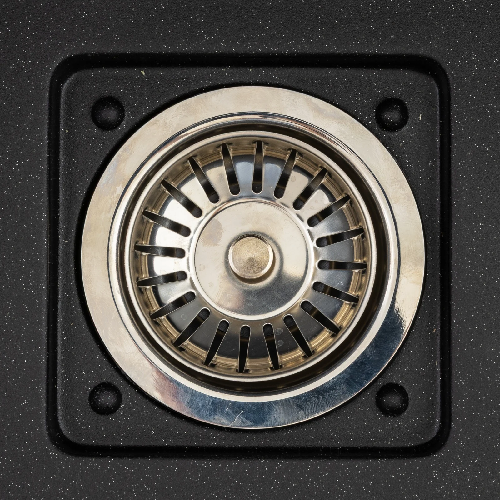 Montajul se face pe blat, iar sistemul de scurgere 3 1/2” cu sifon simplu permite evacuarea rapida a apei si compatibilitate cu accesoriile standard. Materialul este rezistent la decolorare in timp, pastrandu-si aspectul modern si textura minerala chiar dupa ani de utilizare.